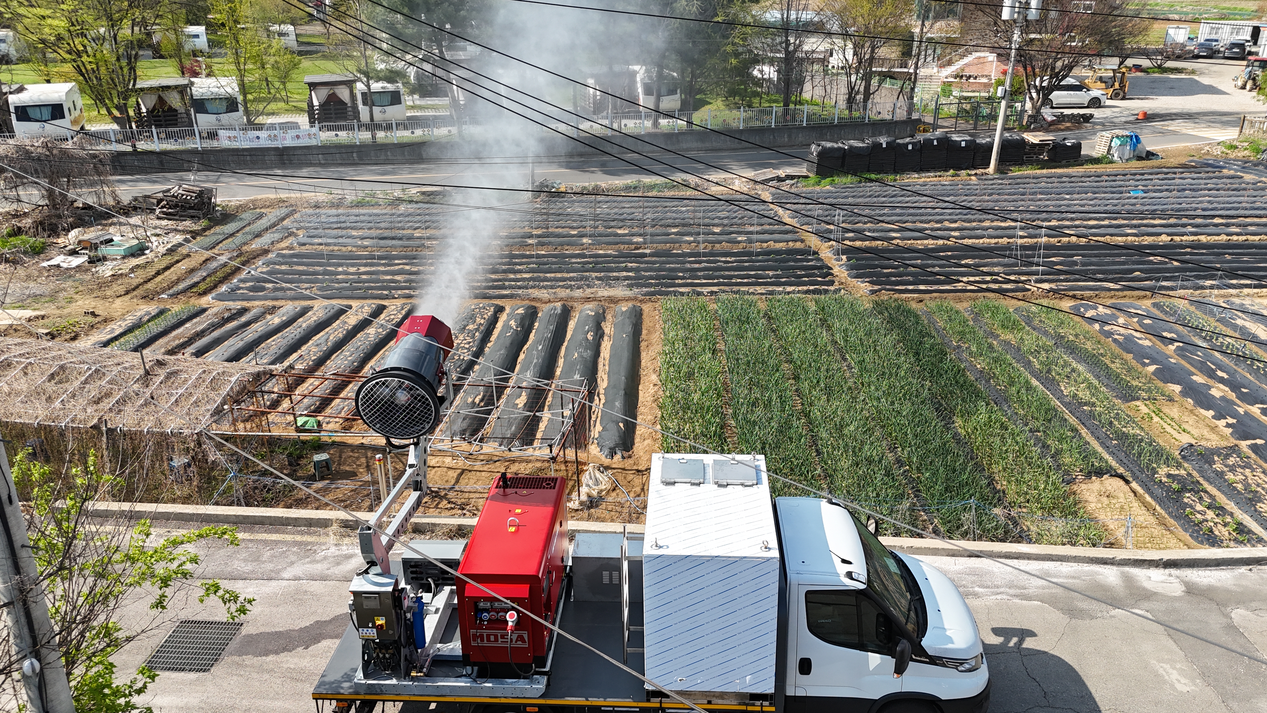 - 온도/습도 조절: 18마이크론(μm)의 초미세 안개 입자가 증발하며 경기장 지표면 온도를 효과적으로 낮추고, 잔디 생육에 최적화된 습도를 유지합니다.